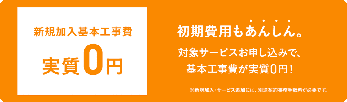 新規で対象サービスに加入されると、基本工事費実質0円。